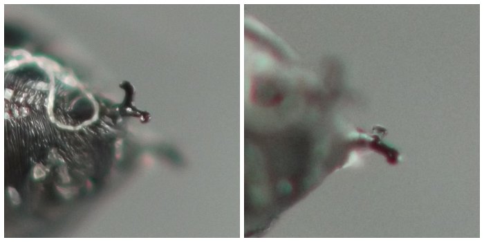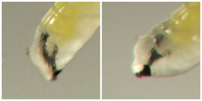 I reared two larvae to the puparium stage in 2021, with the puparia formed by late June. One of these puparia was formed inside its stem, while I found the other in the moistened tissue paper wrapped around the base of a stem in the rearing container. The puparia were black, widest near the anterior end and tapering to the posterior, the sides scalloped rather than smooth in profile, with the stalk of each anterior spiracle divided into two slightly curving arms (a rather unusual configuration among the stem-boring agromyzids I am familiar with).