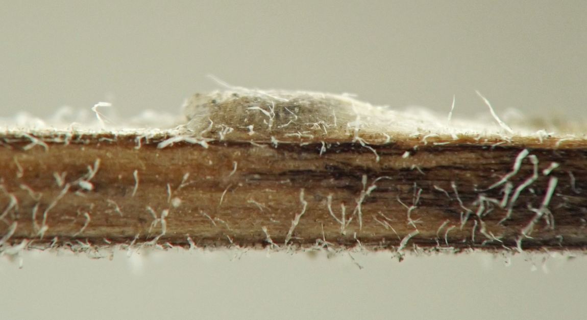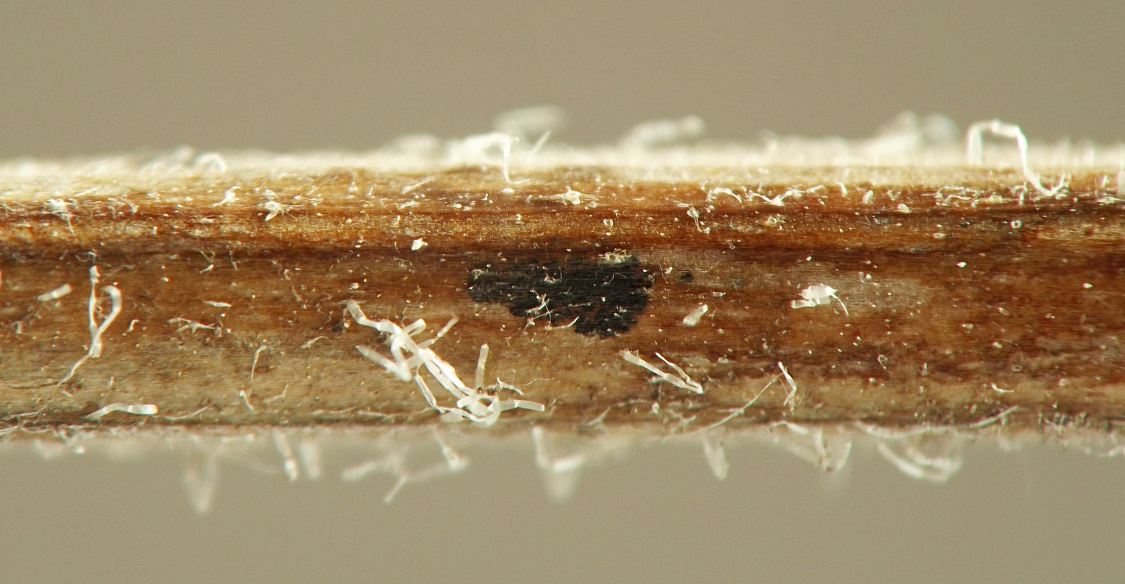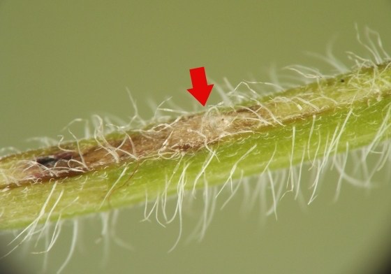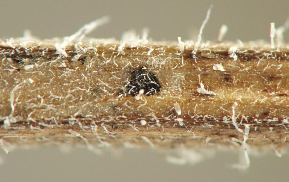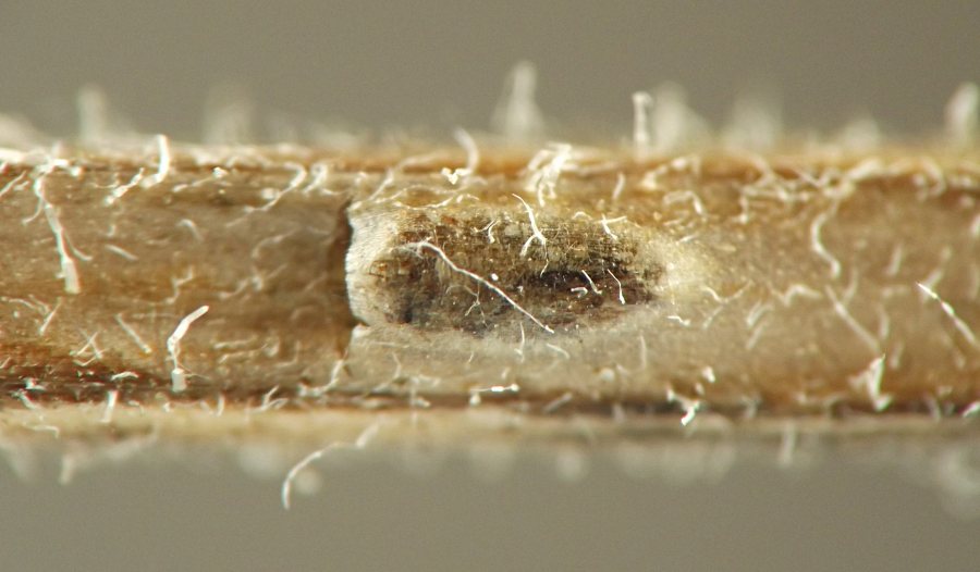 The anterior spiracles of the puparium project through the stem epidermis.