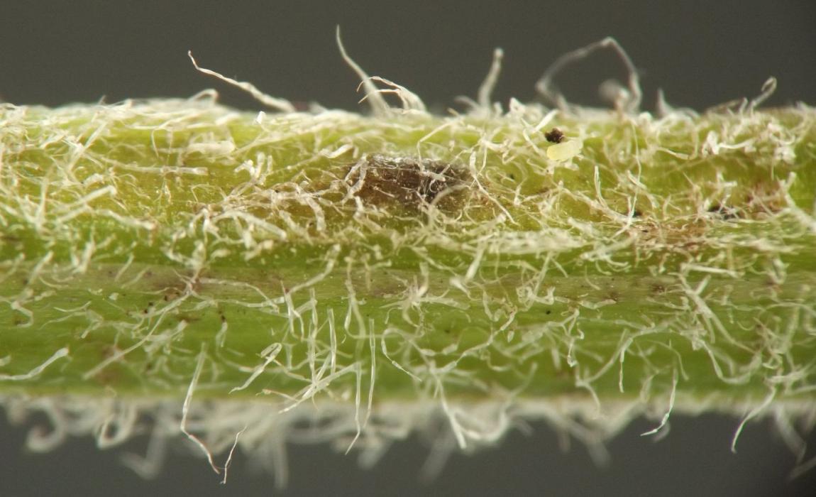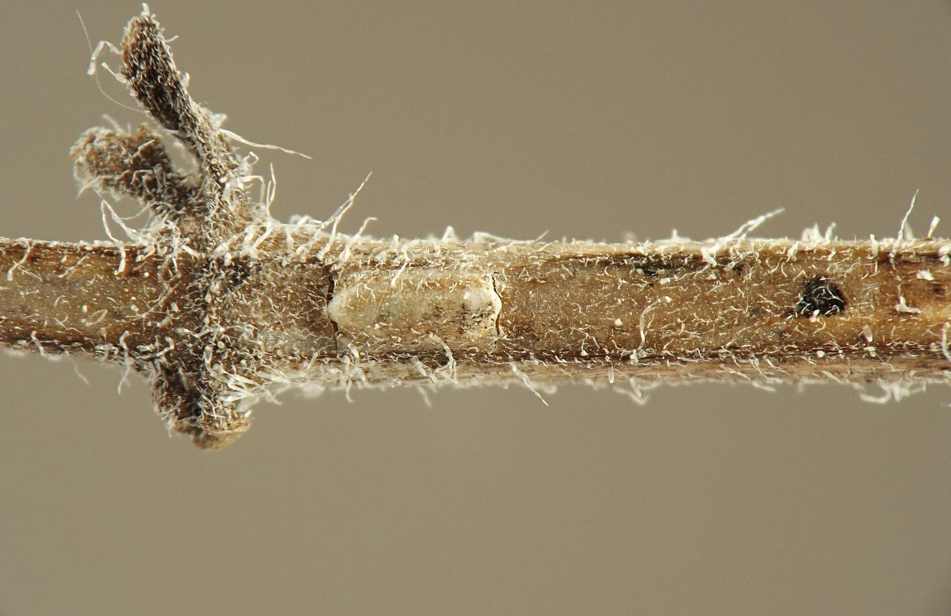 I found intact puparia of this miner in late July and early August, under the stem epidermis at the ends of externally visible mines, mostly in middle to upper stems. I also located puparia on overwintering dead stems of the host in February. The dead stem of one host plant individual had four lateral branches in its infructescence, and each of these four lateral stems contained a single overwintering puparium under the epidermis.