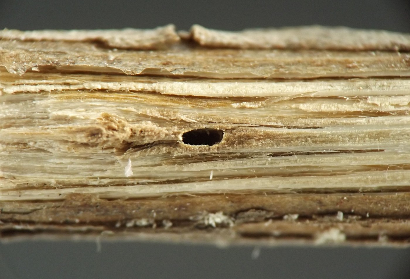 I encountered puparia in tunnels in stems of the host in October and January. In the October instance, the larva had prepared a short, arching exit tunnel composed partly of shreddings and leading from the pupation location in the pith to a small oblong exit hole in the outer wall of the stem, which was covered by a thin operculum of stem epidermis.