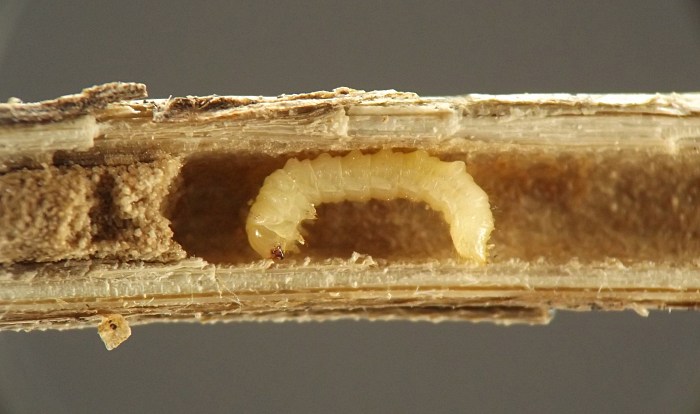 Coll. 01/11/23, photos of larva and plant damage same day (01-08), adult em. 05/12/23, photos of pupal exuviae and pupation chamber same day (09-11), photos of adult on 11/11/23 (12-13). All specimens above from Iowa, USA.