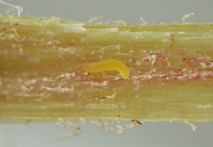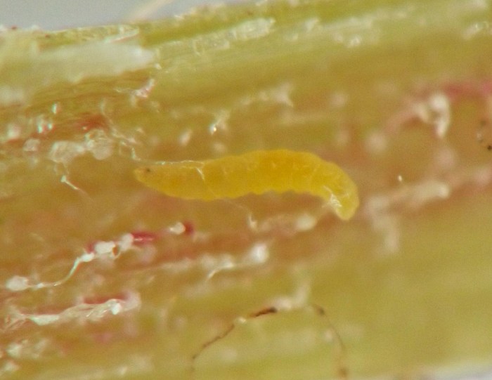 I found three yellow-orange larvae of this cecidomyiid in a lower stem of the host in mid-July, 2023.