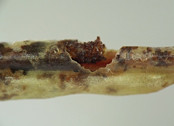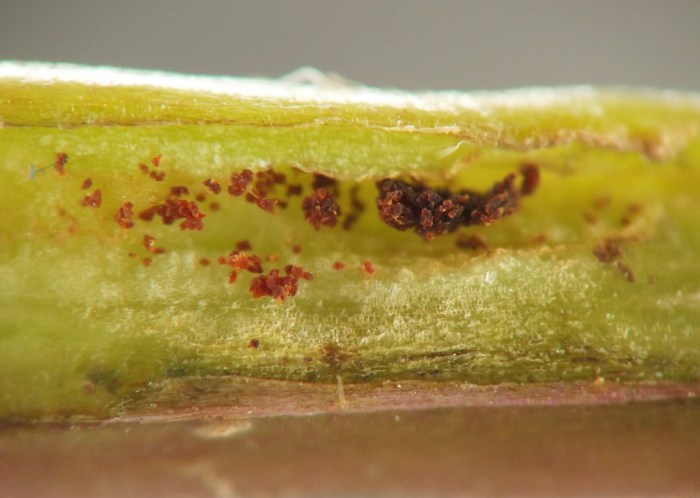 Multiple larvae could be found in the galls affecting a single petiole or section of stem. One petiole I photographed contained at least three larvae.