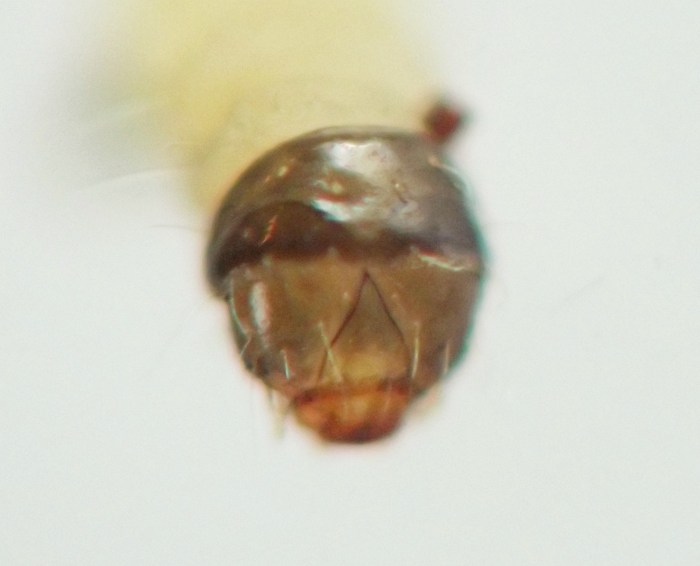 According to Weiss and West, the larvae "crawl beneath the debris on the forest floor" after leaving the plant and then pupate "within the case during the last of August." (They did not describe how they were able to observe the forest floor behavior or how they cared for their captive larvae over the course of the summer until the larvae pupated.) Despite multiple attempts, Weiss and West were unable to succesfully obtain adults from overwintered pupae. They shared larval specimens with Carl Heinrich, who "identified the larva as that of a species of Adelidae, possibly Adela ridingsella." I do not know which characters Heinrich used to arrive at the family-level identification of Adelidae or what if anything led the authors to believe the species might be A. ridingsella. McGiffen and Neunzig refer to this moth as Heliozela sp. near aesella, and I rely on this later determination of theirs herein.