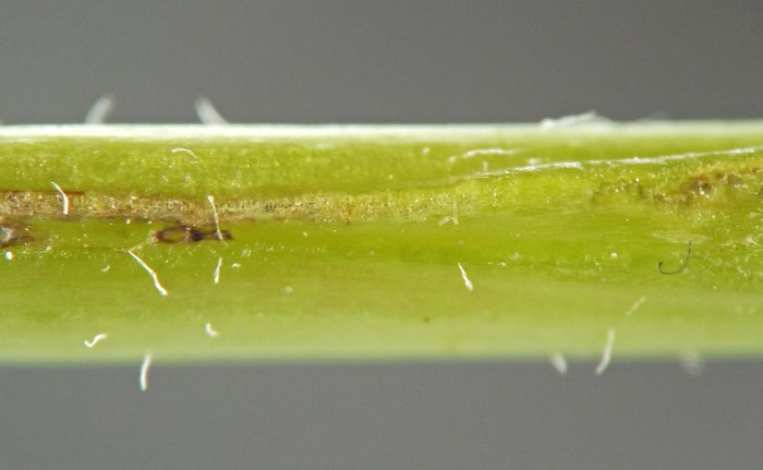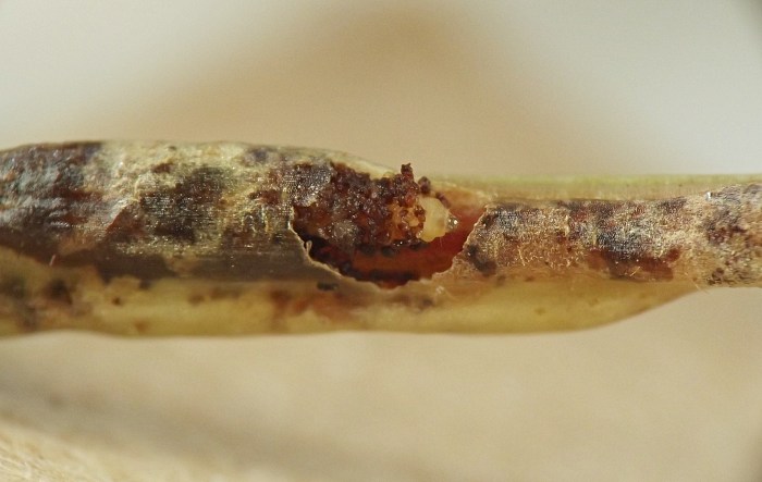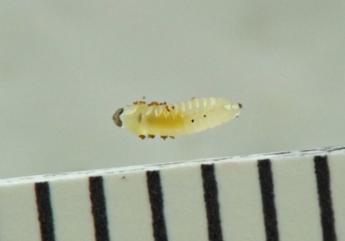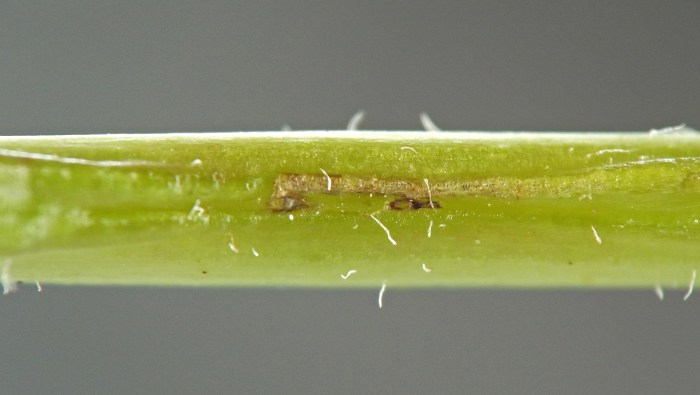 This unusual stem and petiole dweller was documented in the literature via a brief note by Weiss and West (1925), who initially collected it in New Jersey in 1921. They were able to rear larvae through to the pupal stage, but did not obtain adults. McGiffen and Neunzig (1985) conducted further documentation and rearing efforts. The following account expands on these authors' work, documenting several details of the immature life history with photographs and notes.