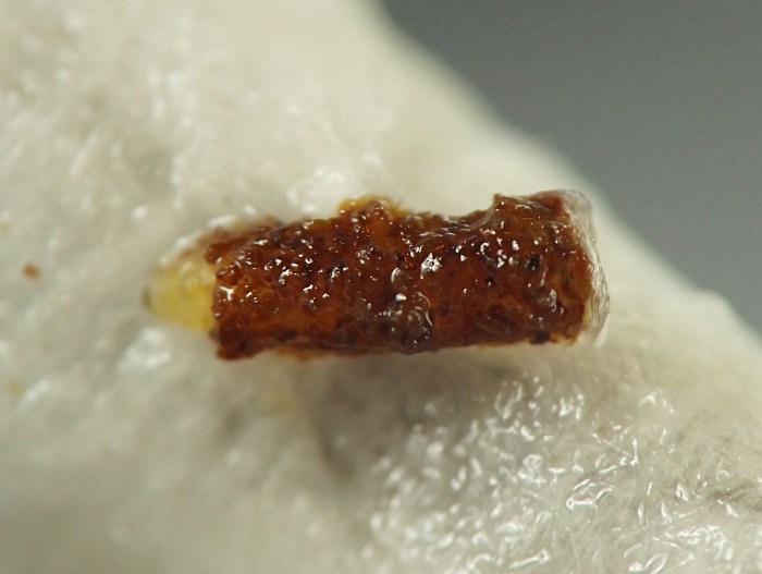 However, my photos of larval cases suggest that the base layer of the case may actually consist mainly of plant epidermis that the larva cuts out and assembles into a tube, before it begins to add the numerous small fragments of frass and epidermis to the exterior of the case. This base layer is especially noticeable when the air is dry and the small fragments on the case exterior have desiccated, revealing the layer underneath (see photos). The excision of such a large quantity of epidermis as the foundation of the case could help explain the large size of the hole in the epidermis that accompanies some larvae and their cases. Still, I cannot absolutely confirm this hypothesis because I did not directly observe the beginning of case construction. If the case foundation is indeed constructed of epidermis, it's unclear to me whether it consists mainly of a single large piece or several smaller pieces woven together.