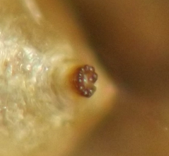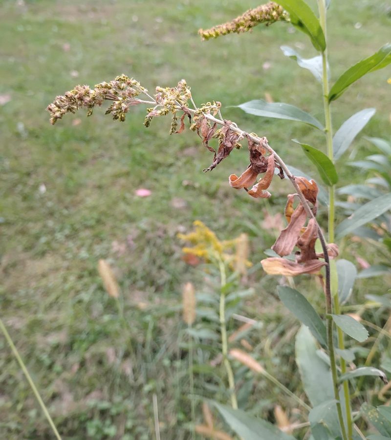 Also, in October 2025 I found an upper stem of Solidago sp. that had shriveled and died down prematurely. Examining it, I found an an agromyzid puparium in a tunnel in the pith. The tunnel was confined to the upper stem and filled most of the stem diameter. Prior to pupation, the larva had established an operculum in the outer wall of the stem for the later emergence of the adult fly. The heavily ragged texture of the tunnel walls, the shape of the puparium, and the plant damage were all quite similar to one of the agromyzid borers I have documented in Symphyotrichum spp. as part of this survey (record 0542). These characteristics were also different from those of the October 2021 S. flexicaulis collection, suggesting two species may be involved.
