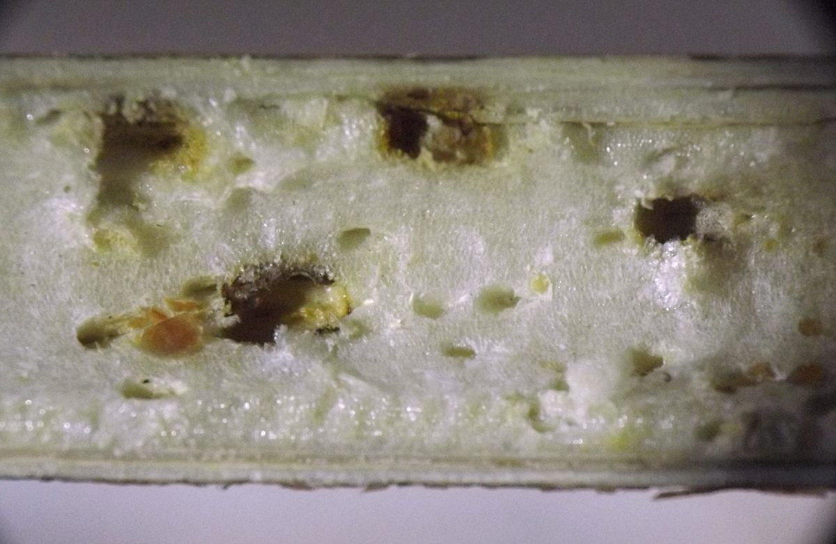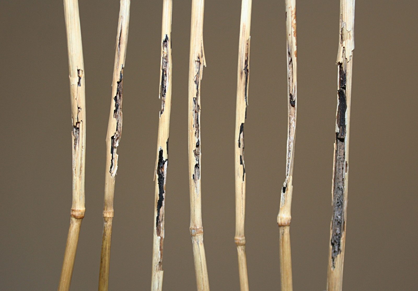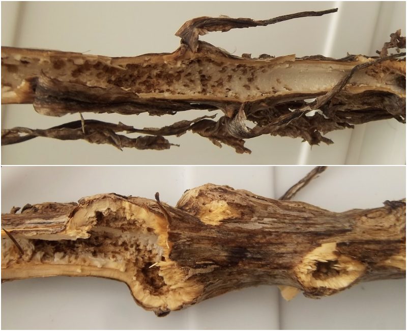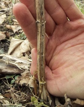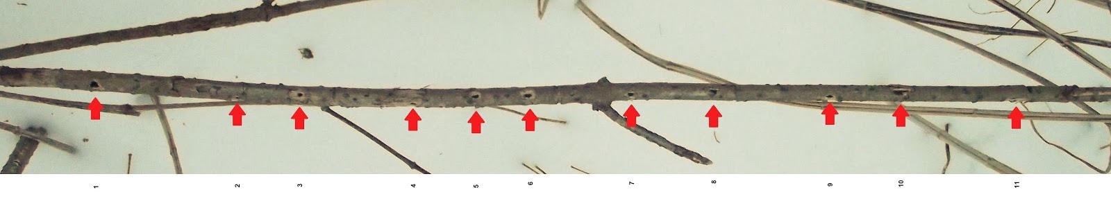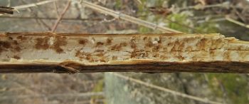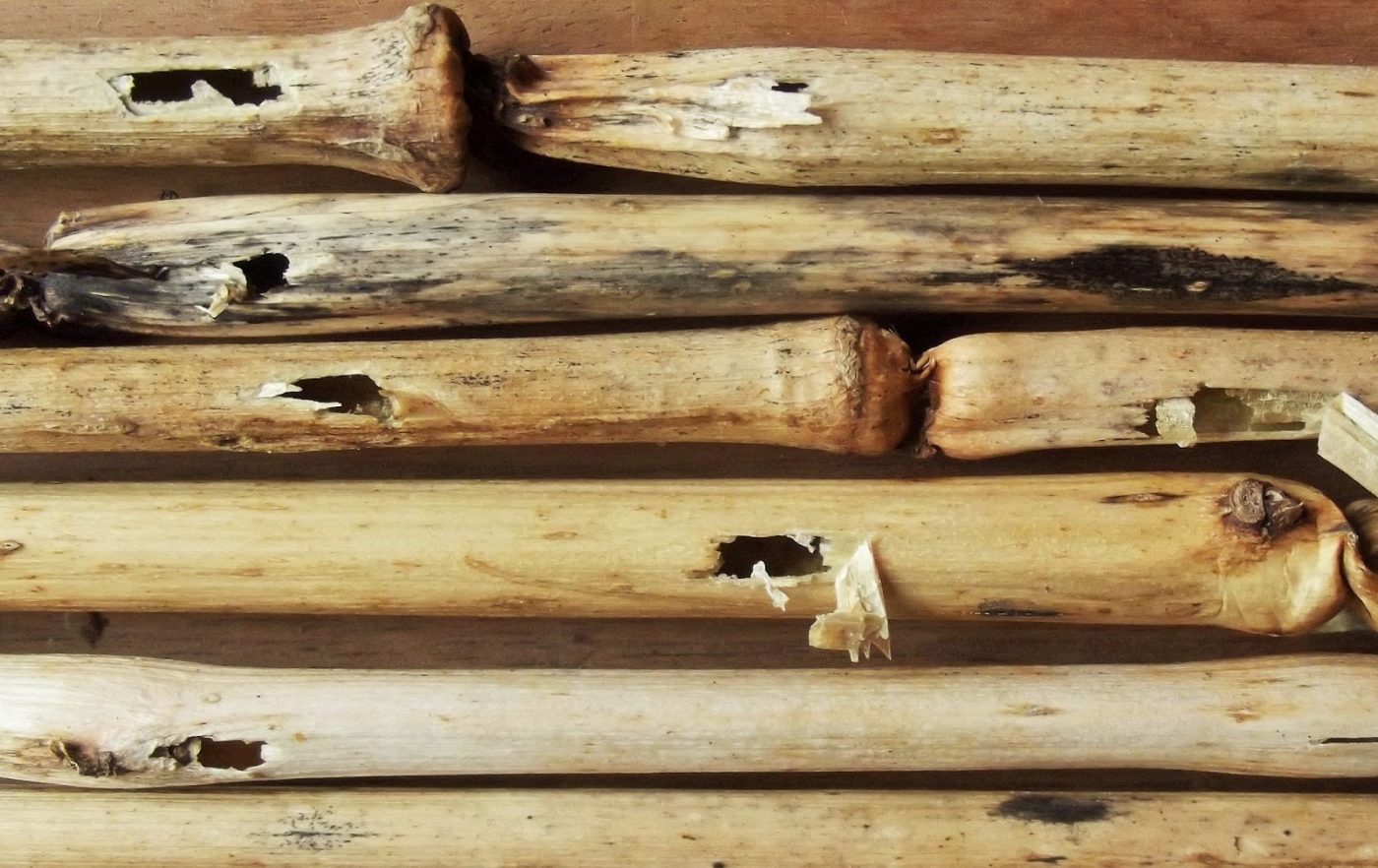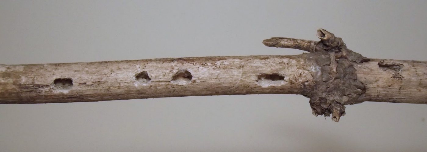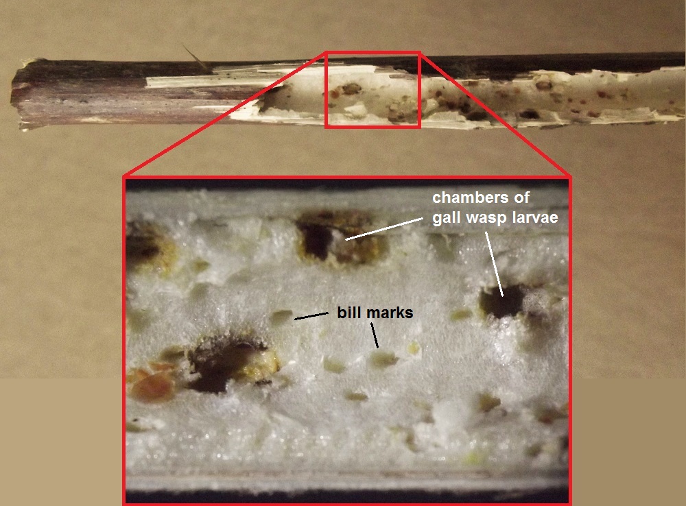 This page collects some of my images of damage to plant stems and stemlike structures wrought by predators searching for endophagous insects. Click the image thumbnail for a larger version.
