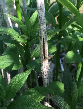 Vertebrates hunting Eurosta solidaginis in Solidago (0514).